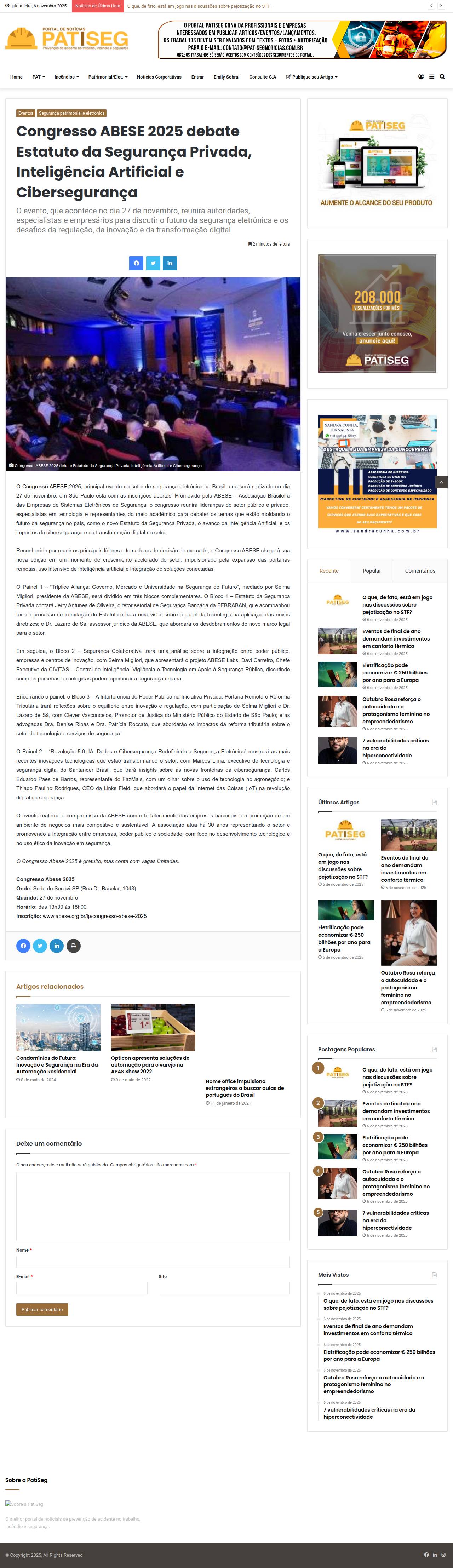 https://patisegnoticias.com.br/2025/11/06/congresso-abese-2025-debate-estatuto-da-seguranca-privada-inteligencia-artificial-e-ciberseguranca