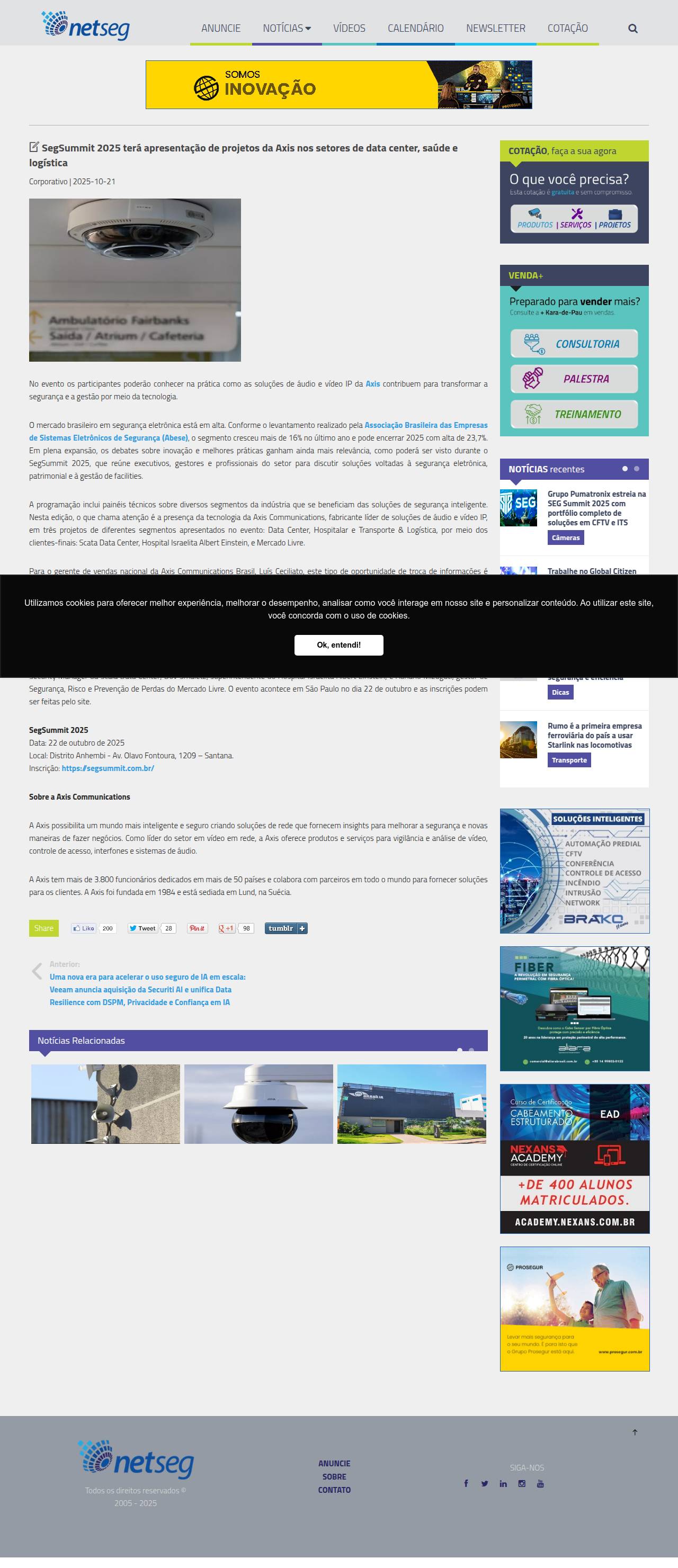 SegSummit 2025 terá apresentação de projetos da Axis nos setores de data center, saúde e logística