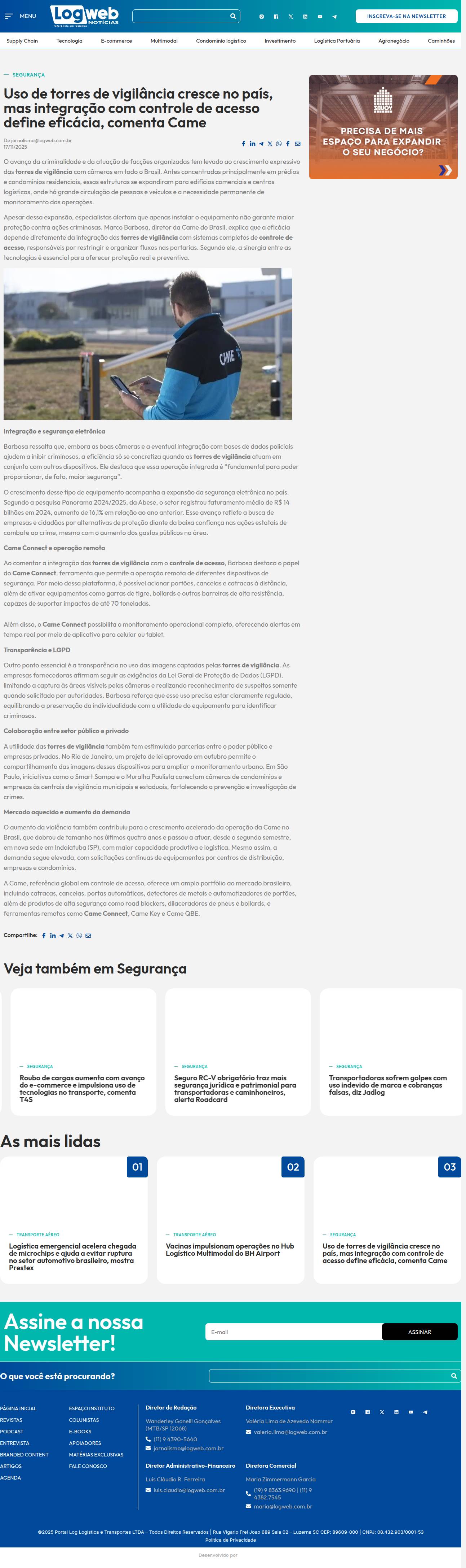 https://logweb.com.br/torres-de-vigilancia-integracao-controle-de-acesso-came