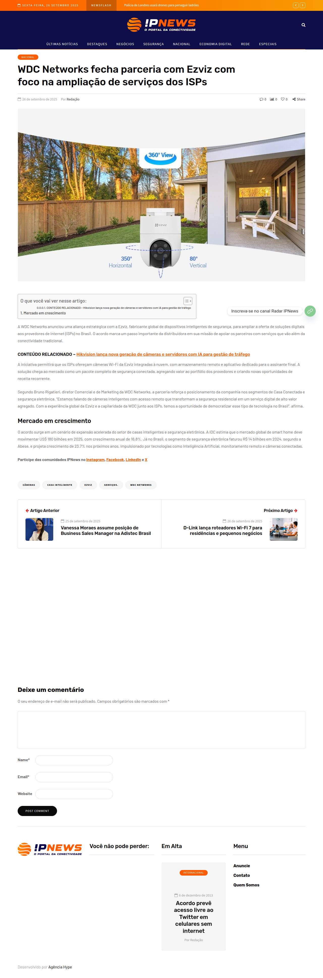 WDC Networks fecha parceria com Ezviz com foco na ampliação de serviços dos ISPs - IPNews - O Portal da Conectividade